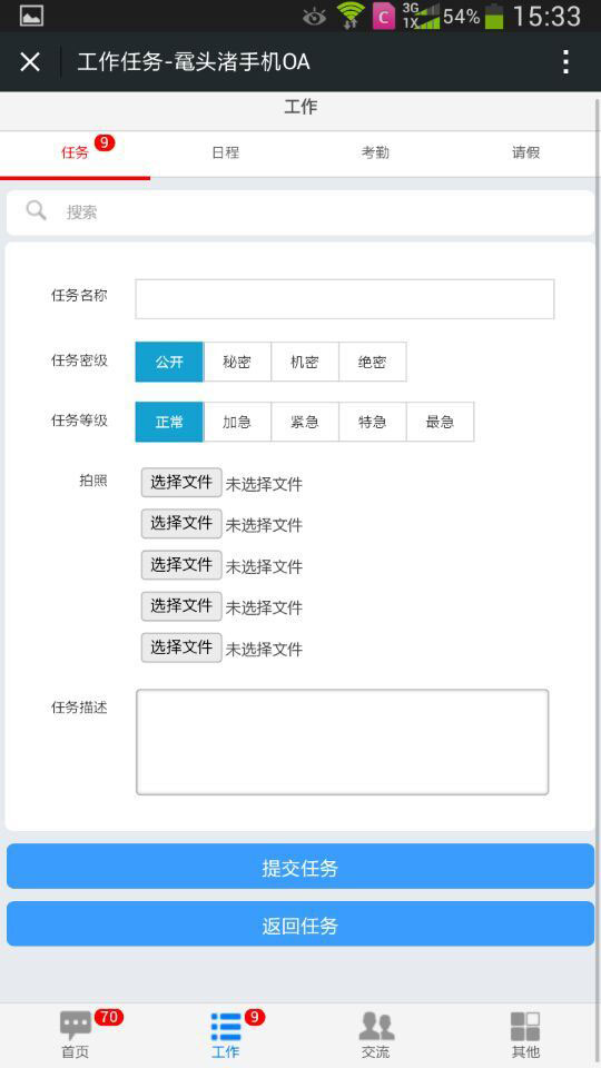 通過微信實(shí)現(xiàn)簽到、日程安排、請(qǐng)假;任務(wù)下達(dá)、流轉(zhuǎn)等工作流程,真正實(shí)現(xiàn)隨時(shí)隨地辦公。