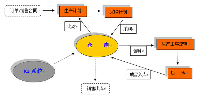 1)◇代表一個實際工序;[]代表軟件操作;□代表一級倉庫