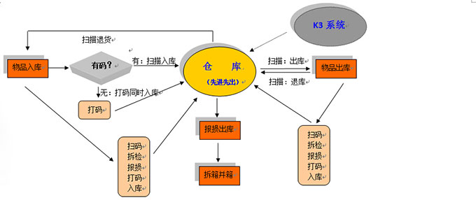 4)客戶退貨時,理論上要先掃碼;再拆檢:好的打碼入庫;不好的報損。